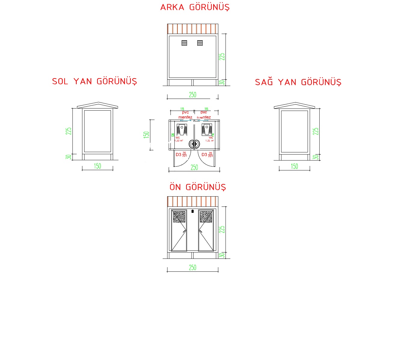 1,5X2,5 EK ÇATILI İKİLİ WC KONTEYNERİ 3.75m2