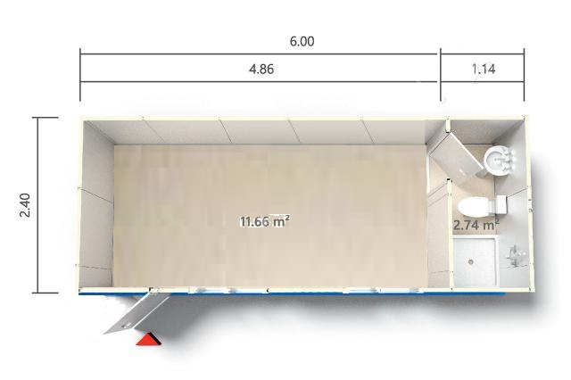 2,40 x 6.00 14.40 m2 WC'Lİ DUŞLU TEK BÖLMELİ TEK ÇIKIŞLI ÇİFTCAM ÇİFT PENCERE ÇOK AMAÇLI YAŞAM KONTEYNERİ