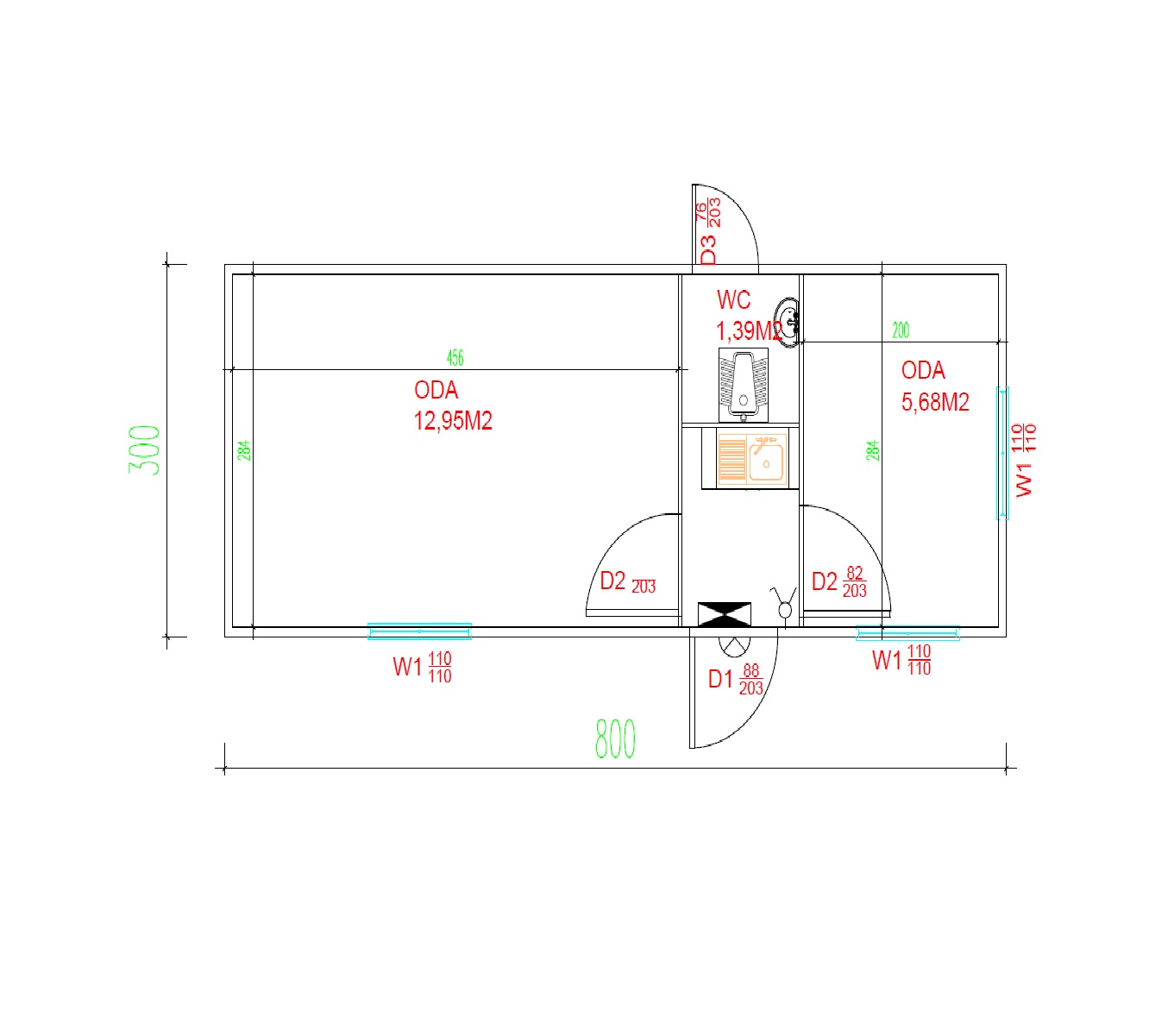 3 x 8 TEK PENCERE TEK KAPI TEK RENK YAŞAM KONTEYNERİ 24m2